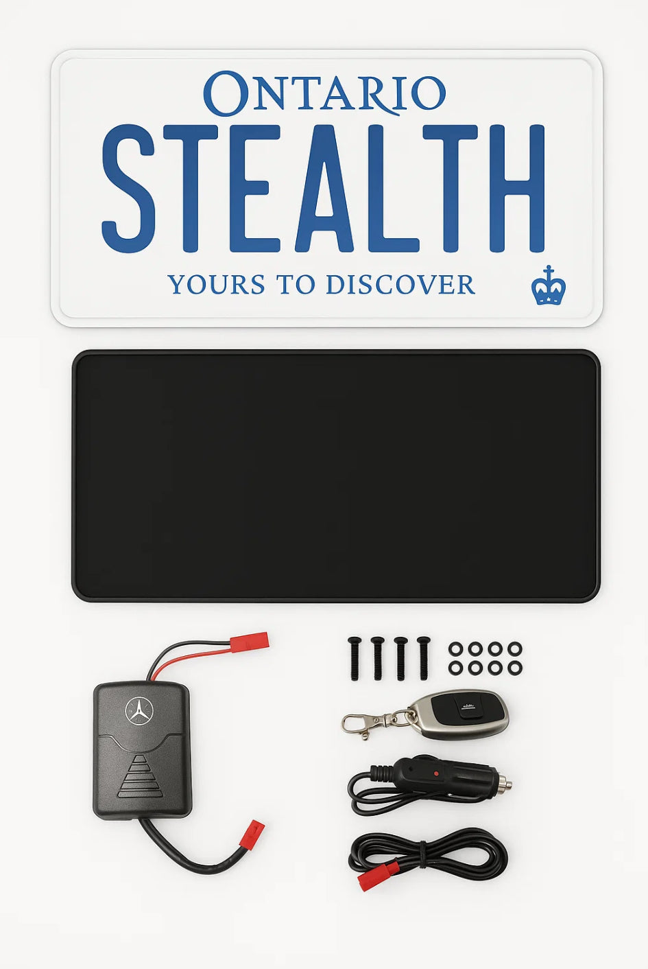 Yes — our Stealth Plates use electrochromic blackout film that turns completely opaque in under 0.2 milliseconds. Unlike traditional stealth license plate flippers or covers, there's no motor or movement involved. Just press the button and your plate disappears from sight.